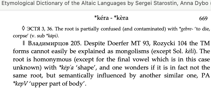 I see there a very old Proto Altaic and Turkic stem.